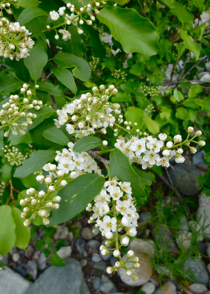 Ethnobotany Information | Although the berries are astringent, they are popular eaten fresh, dried, and as a juice. St’at’imc elders distinguish at least two varieties: one has translucent red fruits that are sweet and juicy, and the other has dark purple-black fruits that, unless picked when completely ripe, are astringent, giving a feeling of having swallowed a mouthful of cotton, hence the name “choke” cherry. | |
