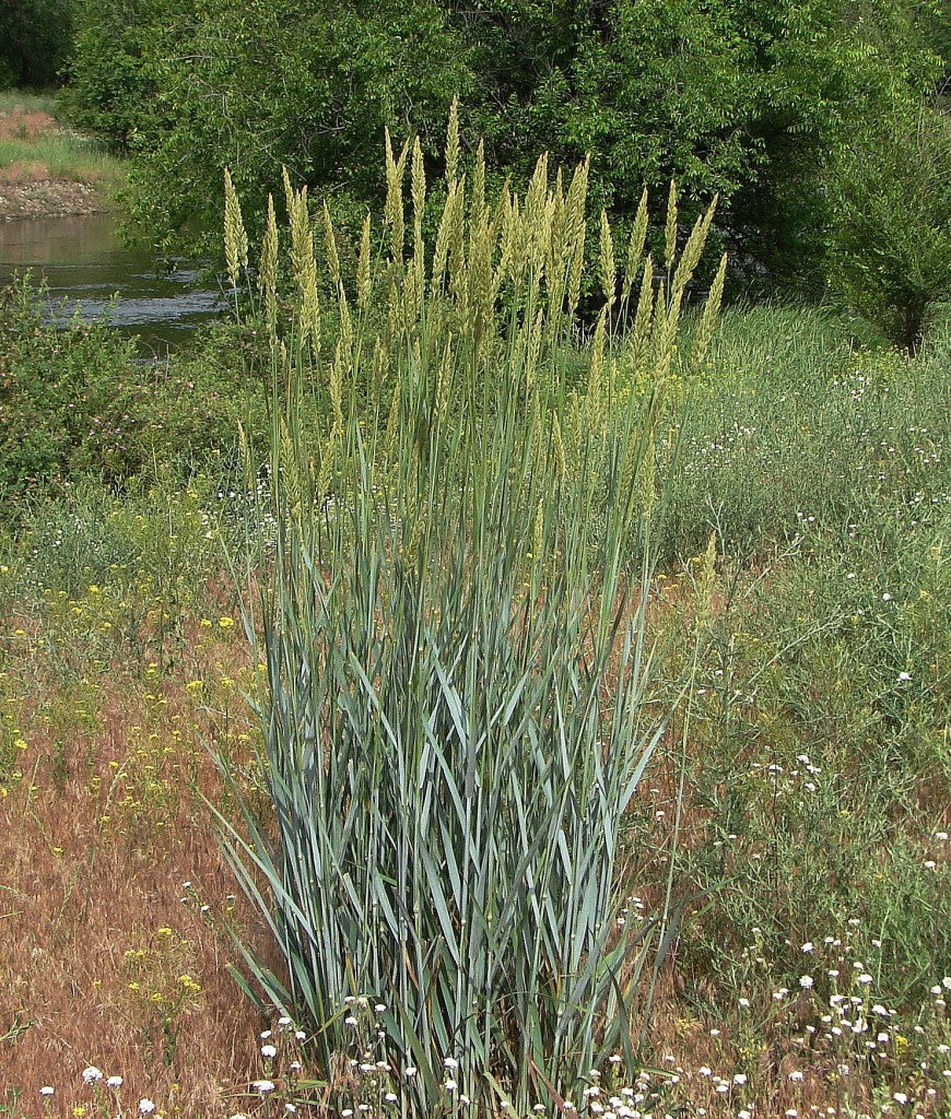 Giant Wildrye is a large native bunchgrass, growing up to 2 m tall and having large erect seed heads. It has broad, very tough smooth stiff leaves.